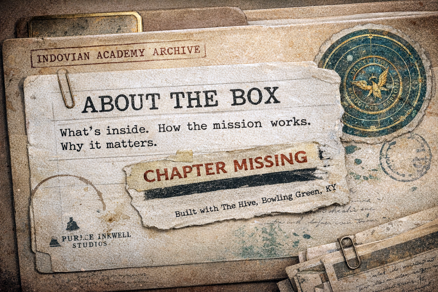 Made for Geeks by Geeks is the hands on build team behind the Indovian Academy boxes, developed in collaboration with members of The Hive community in Bowling Green, Kentucky. It exists to create story driven artifacts that feel like they were pulled from another world, designed by neurodivergent minds and built for curious readers, makers, and learners.