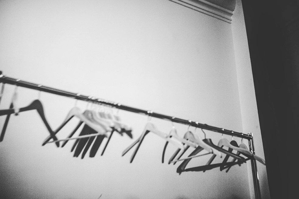 Empty hangers rest on a rack, suspended in quiet anticipation. The shallow focus and subtle distortion render them ghostlike. Without bodies, the forms feel provisional. Presence is implied but absent.